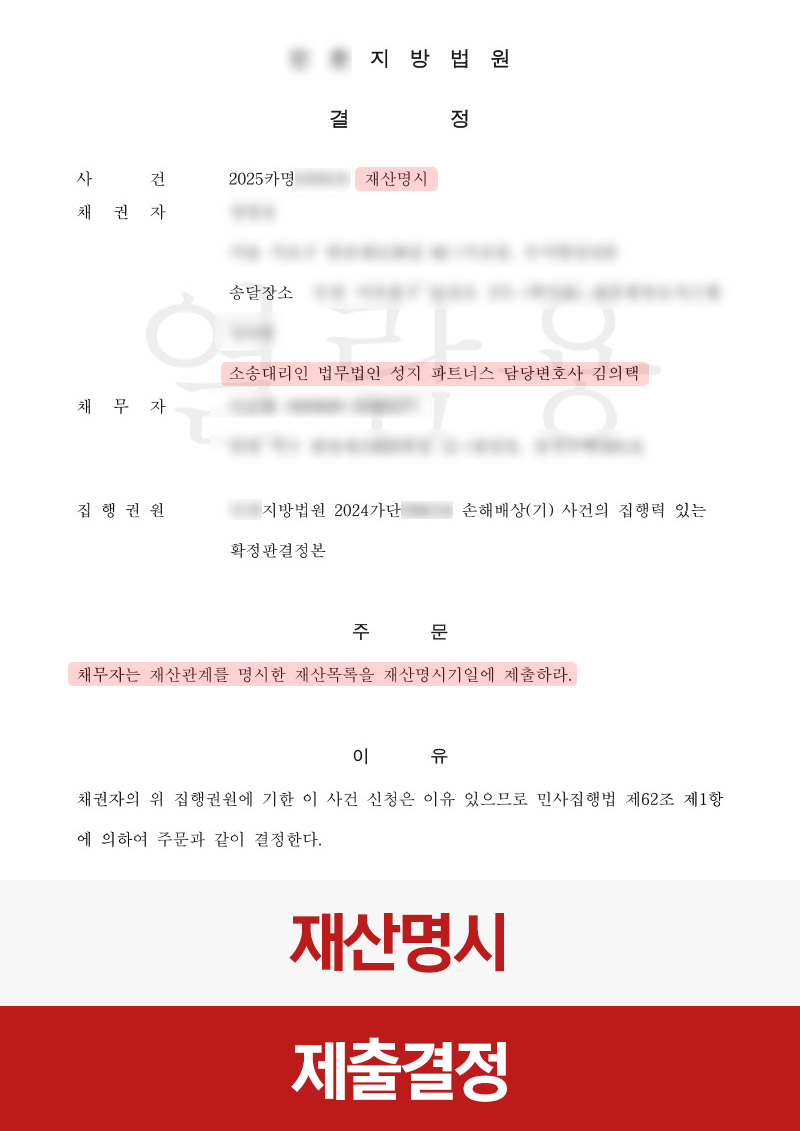 재산명시 결정으로 채권자 권리 보호 및 채권 회수 성공 사례