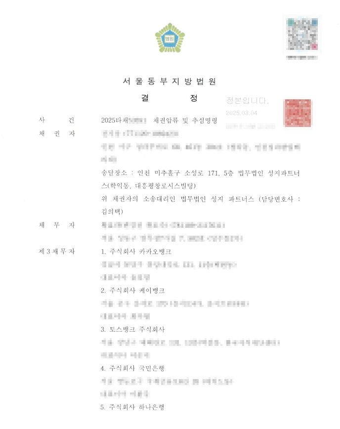 [채권압류 및 추심명령] 채권압류 및 추심명령 성공사례