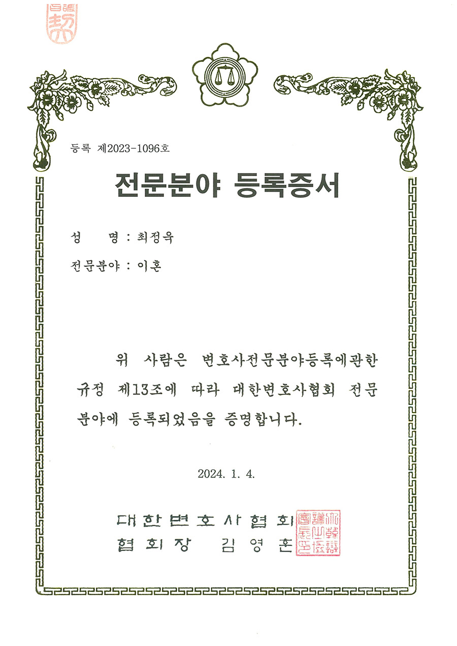 ‘대한변호사협회 등록 '이혼' 전문변호사 전문변호사’